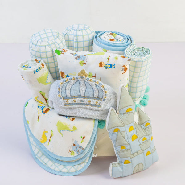 Check out gift sets like the New Beginnings, Favourite Essentials, or Royal Prince hampers. These curated gift sets include personalized bibs, muslin swaddles, and other baby essentials. Not only do they look beautiful, but they’re also wrapped and ready to gift.