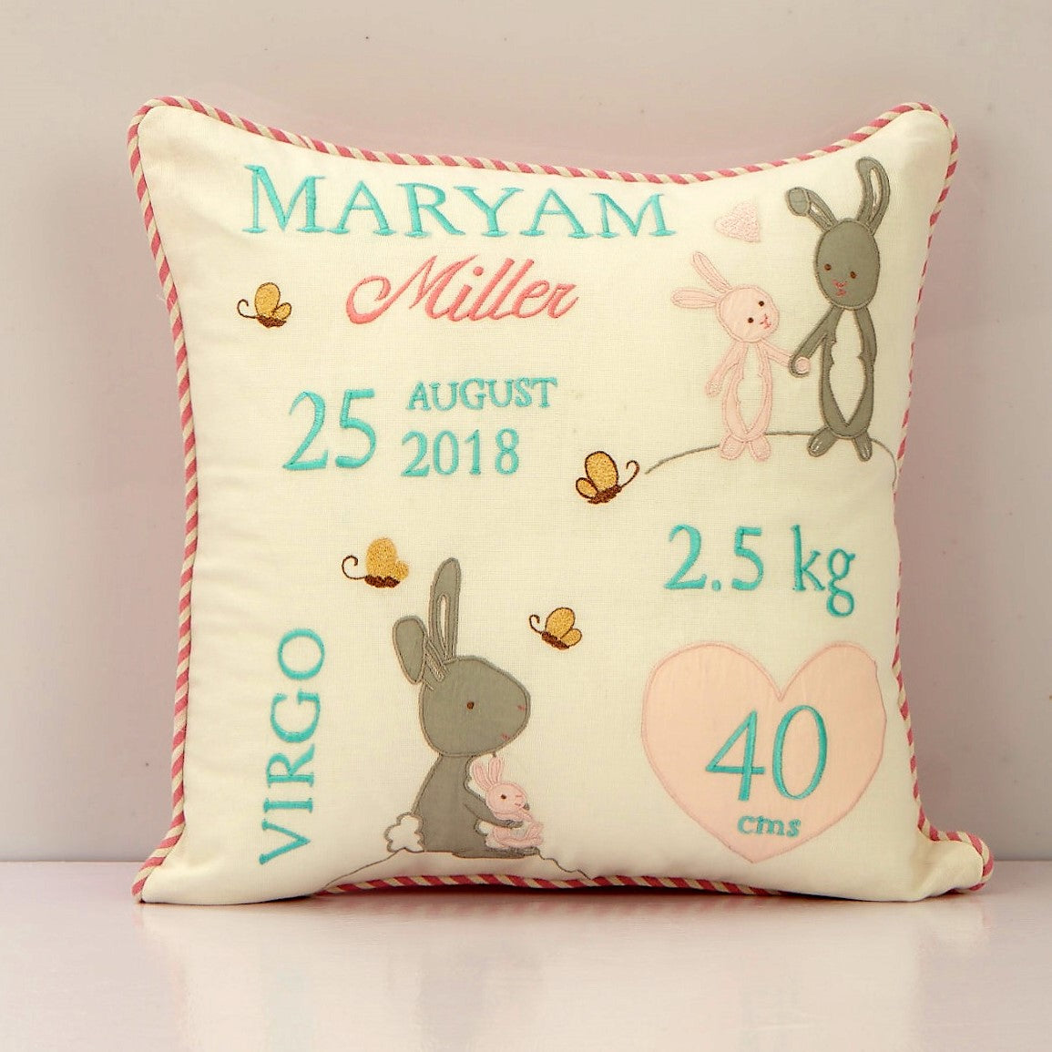 When a baby grows up with a quilt embroidered with their birthdate or a baby pillows featuring their name, that object becomes tied to early family memories, special occasions, and love-filled moments. It turns into a keepsake, not just a possession.