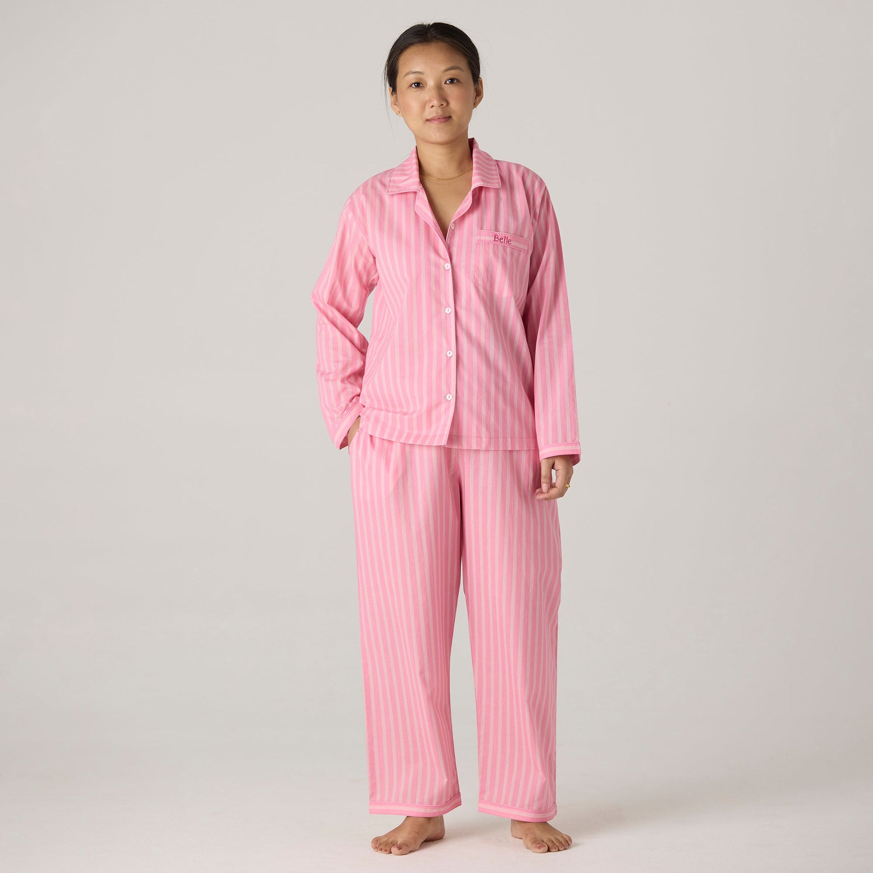 She doesn’t just own pajamas — she owns sets. The kind that go together properly and live in their own dedicated drawer.